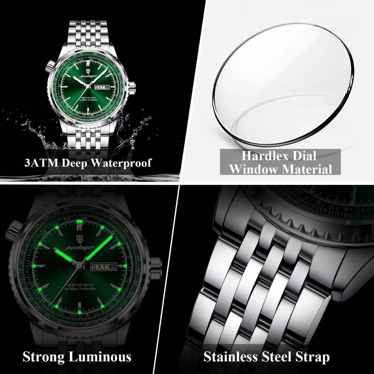 Scratch-Resistant Glass – Protects the dial and retains clarity