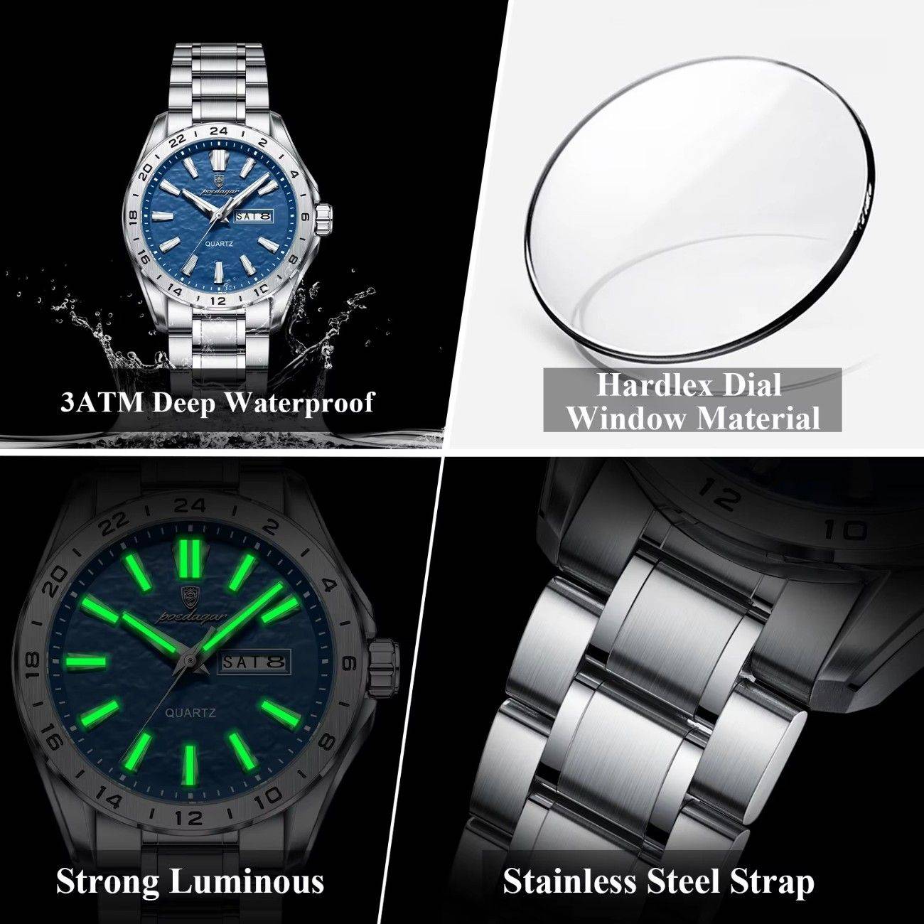 The multi-function chronograph dial, real date & week display, and 30m water-resistant design make it an ideal partner for business, travel, and daily use — a perfect blend of style, power, and confidence.