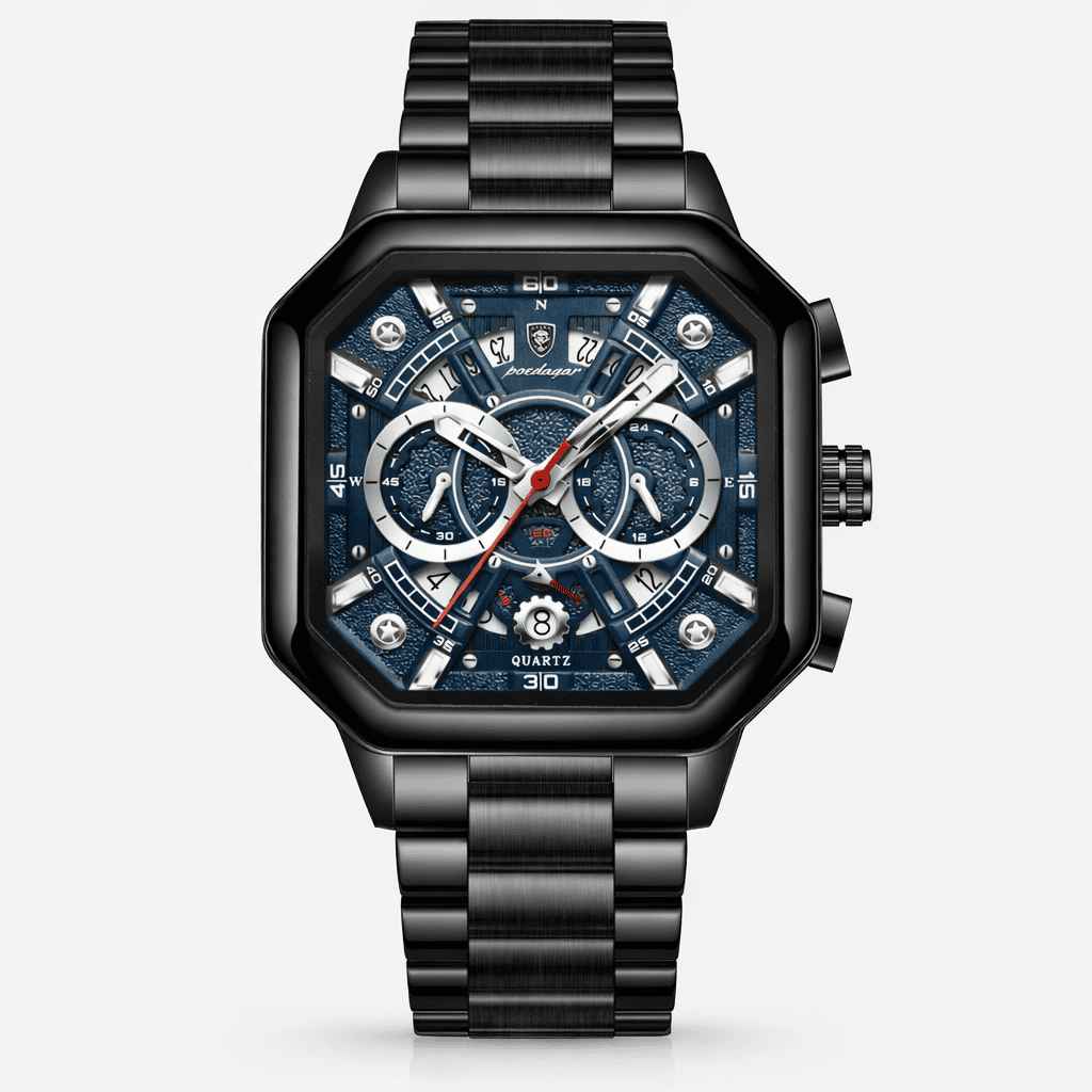 The PulseCobra® Black Chain Watch is a stylish and practical watch with a built-in pulse scale to check your heart rate manually. With its all-black finish and stainless steel chain, it’s perfect for professionals who want a clean, bold look.